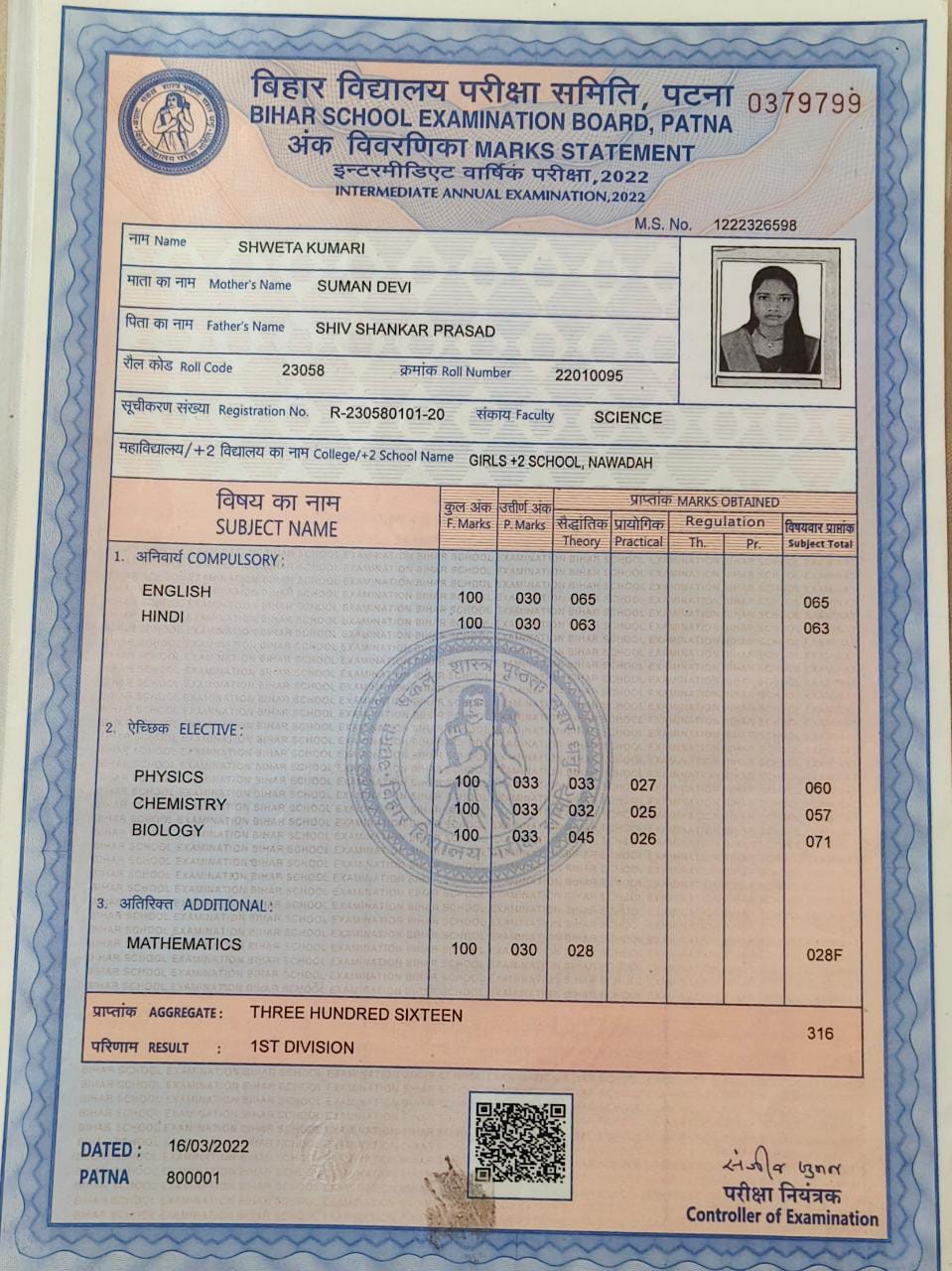 | Exam | Full Marks | Pass Marks | Marks Obtained |