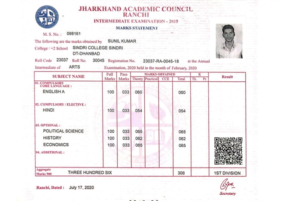 | Exam | Full Marks | Pass Marks | Marks Obtained |